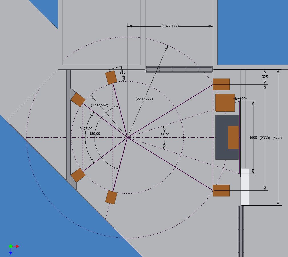 Kunne gjerne tenkt meg å ha en større vinkel mellom surround høytalerne enn 160, men da kommer den nederste surround høytaleren veldig langt ut på gulvet (hvis oppsettet skal være symmetrisk) og blir i veien når den da står midt i hovedferdsåren til kjøkkenet. Om surround høytalerne skal vinkles inn mot sweetspot eller ikke må vel prøves antar jeg. Men brakett til disse blir det nok neppe da de er gulvhøytalere.